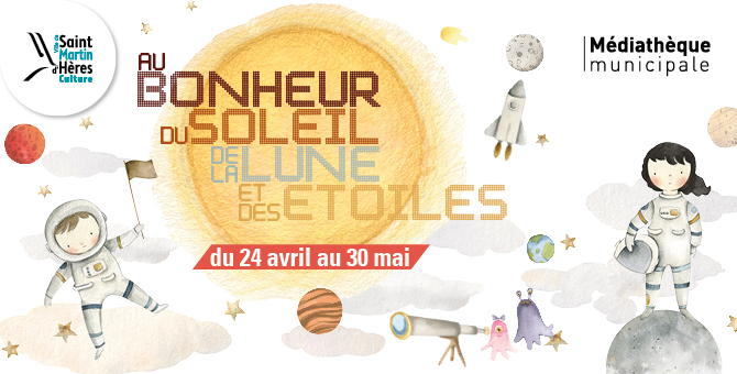 AU BONHEUR du SOLEIL 🌞 et de la LUNE et des ETOILES 🌜 du 24 avril au 30 mai dans les médiathèques et 🚀 ailleurs… Publié le Posted on 2 avril 20262 avril 2026 Partager Pour les enfants et leurs familles du 24 avril au 30 mai 2026 dans les 4 MEDIATHEQUES et ailleurs… Un évènement annuel autour du livre jeunesse, qui s’adresse aux enfants (de 0 à 99 ans) et à leurs familles. En savoir +